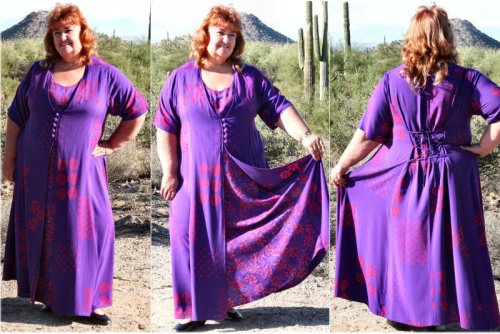 This short sleeve Duster Dress is an all-in-one dress. It has a 5 button faux front closure to make it look like two pieces, but it's not. In the back is an adjustable lace up that gives definition to the fit with an invisible zipper for easy on, off. Perfect for those Red Hat ladies! Fabric Care: 100% Washable Batik Rayon, cold water, no bleach.